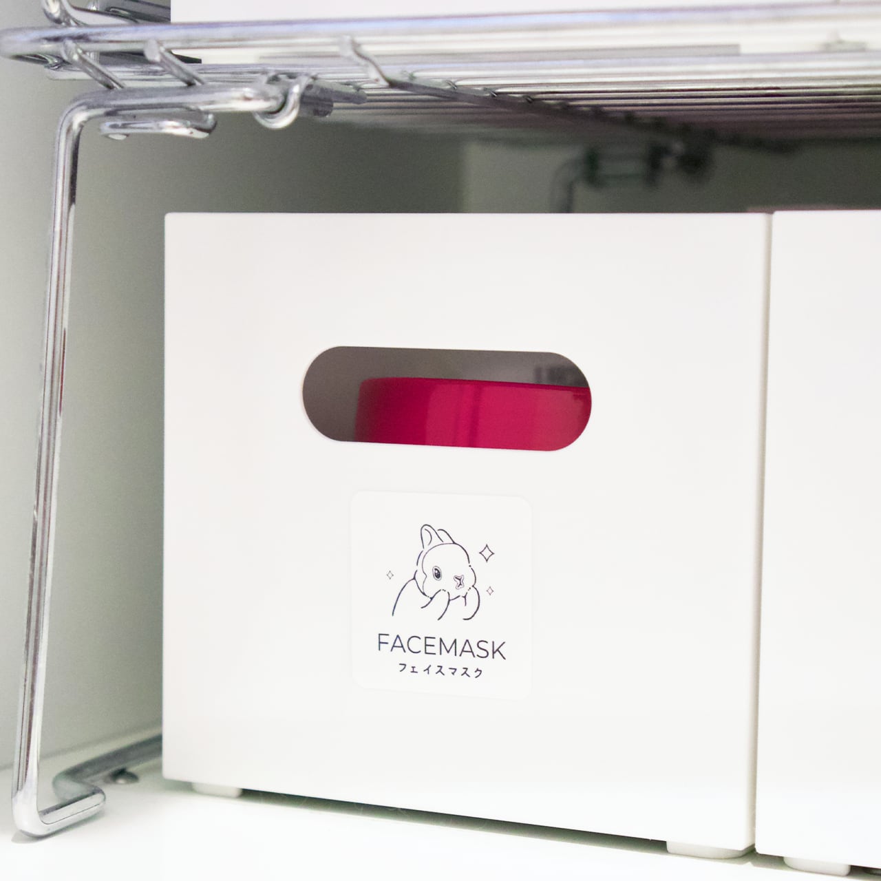 フェイスマスクを入れておく入れ物に貼ってご使用ください。