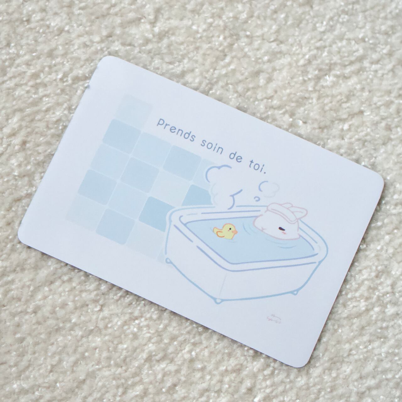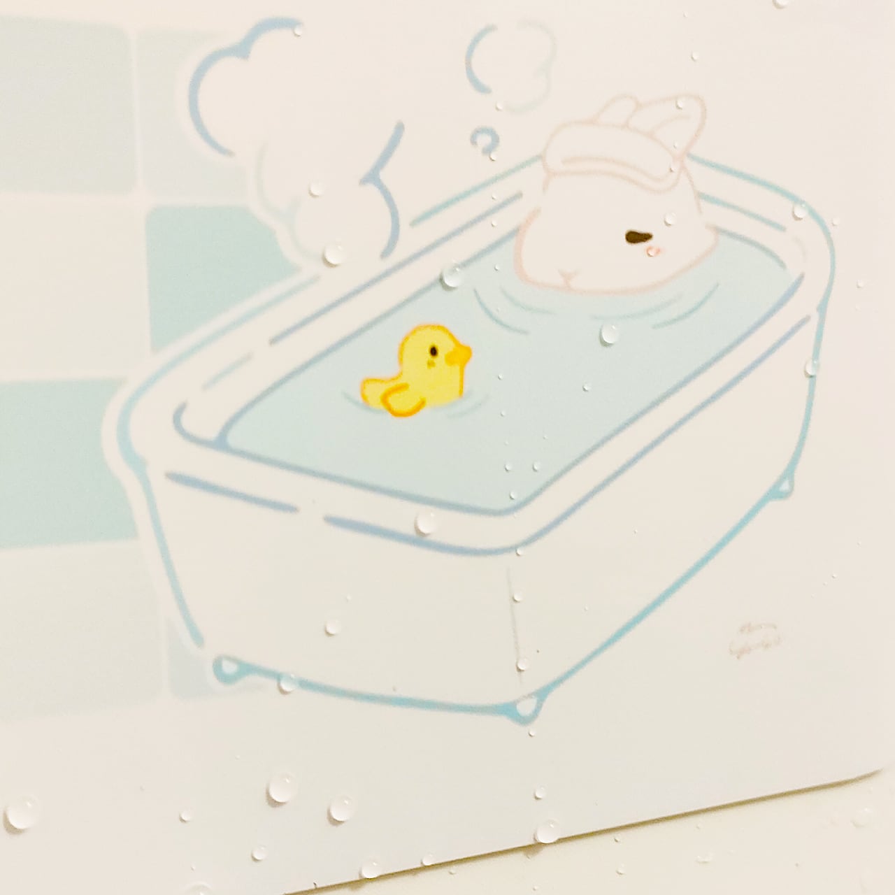 ゆっくりのんびりしているうさぎさんのイラストが、お風呂タイムを楽しく演出します!